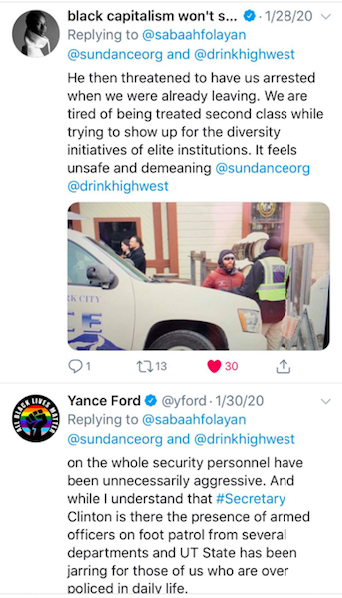 Over the last two days of the festival, the experience followed us like a cloud. White colleagues offered hugs and tsked sadly, some preemptively reassured me that though the incident was unfortunate, it was probably just a jerk having a bad day. I was reminded repeatedly, in so many words, that the arc of the moral universe is long. The message I internalized was “bummer, but, nothing to see here.” Yet our colleagues of color relayed story upon story of their own experiences of harassment, abuse, assault and threats at this festival and others like it across the country. Since the tweets from the incident had circulated to many at the festival , it seemed I couldn’t walk 10 feet on Main Street without someone stopping me to share an account of rude and unwelcoming behavior, racist micro-aggressions, hostility and sometimes outright violence from the police, private security, as well as others in positions of authority or hospitality at Sundance.